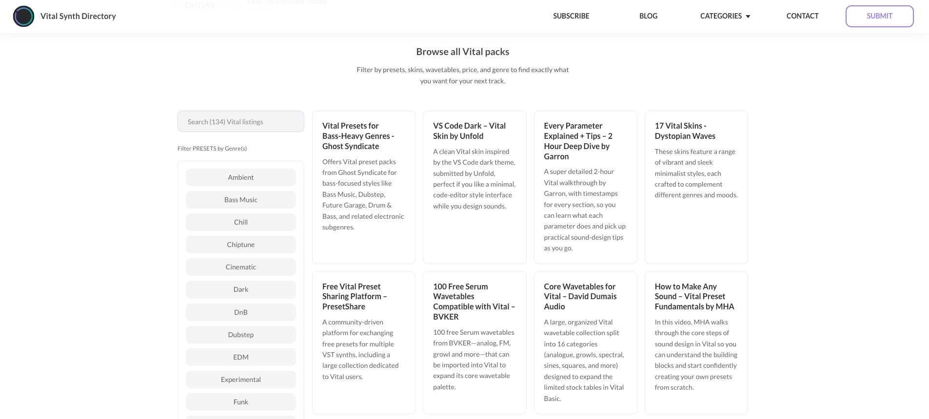 Looking for more sounds? Check out our directory of vital presets. It's loaded with community presets and wavetables for vital vst. If you're just starting, grab some presets and play with the modulation tools at your own pace. For the sound design veterans out there, jump straight into the wavetable editor and create your own sonic fingerprint.